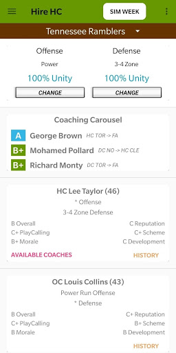 * Hire football coaches who employ different offensive and defensive schemes that affect your player's overall
