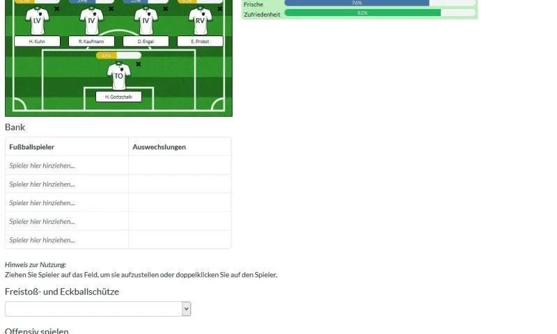 With Fussball Manager you can lead a virtual football team and play with it against other users. Set the tactics for the next match, trade players, train your team, look for new talents in your youth section or extend your stadium. Football matches will be automatically simulated by the system. It decides about goals, goal scorers, assists, passes, tackles, penalty kicks, yellow/red cards, player marks and sold tickets. Managers can follow the simulation with the help of a live ticker. The team managers can even change their substitutions and tactics while the simulation is happening. Realtime statisics, such as players' marks, ball possession and won tackles, will be provided to the users.