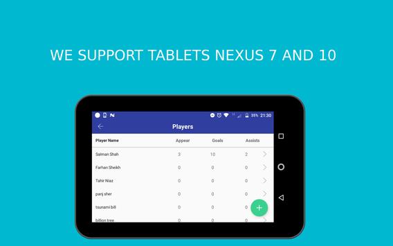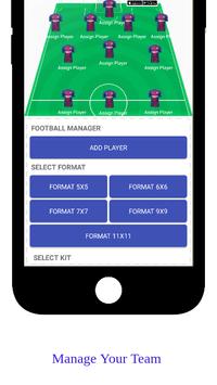 A full app to manage football team in the field with different players limiting players and choosing different match formats and different uniform kits