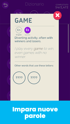 - Un dizionario dove puoi vedere tutte le parole che hai formato.