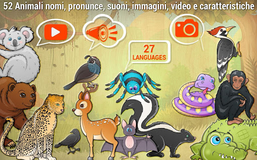 - Gli animali prendono vita e giocano il nome degli animali ei suoni audio.
