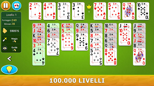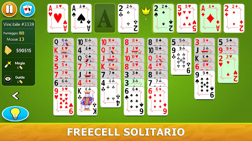 - All'inizio del gioco, tutte le carte sono distribuite su 8 colonne. In alto sullo schermo troverai 4 celle libere e 4 spazi. Usa le celle libere per conservare temporaneamente una carta per volta durante il gioco.