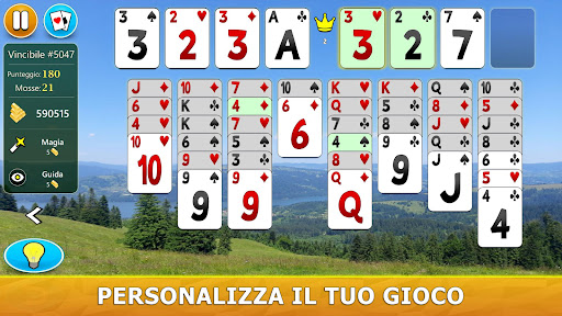 Il gioco ha un sistema di aiuto visivo intelligente. Ti darà suggerimenti utili in modo intuitivo. Se non hai mai giocato a FreeCell Solitaire prima, il nostro sistema di aiuto ti consiglierà, passo dopo passo, le mosse migliori da fare.