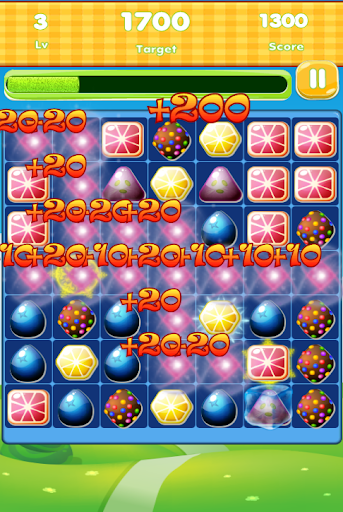 Metodo di gioco: Abbina lo stesso frutto di colore (almeno 3 frutti di frutta), si passa la sfida quando si ottiene il richiedamento dei punteggi ad ogni livello.