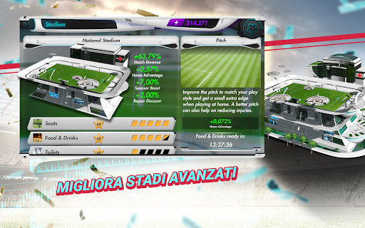 ⬢ Migliora il livello del tuo stadio fantascientifico, i tifosi sono tutto per te
