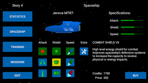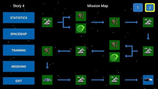 You are a captain of the Galactic Federation Defense Forces. Develop your career by choosing Federation missions to increase your prestige and your earnings. Choose your starting spaceship and complete the mission map to get credits. With these credits you can customize your spaceship by adding improvements that will increase its attack potential, its defensive shield and its speed.