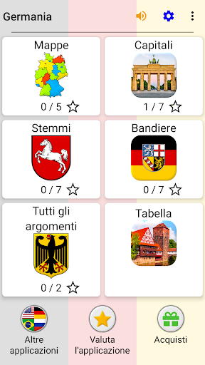 L'applicazione è tradotto in 9 lingue tra cui l’italiano e tedesco. Così si può imparare i nomi dei stati federati della Germania in ciascuna di queste lingue.