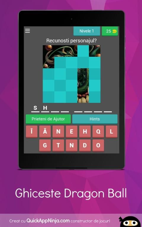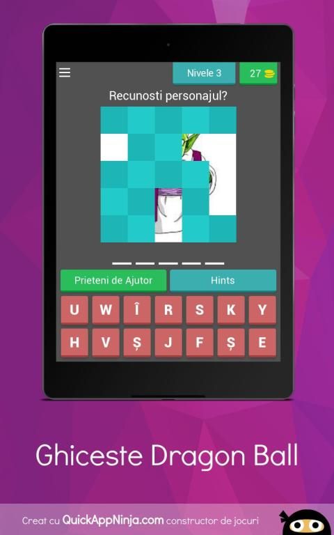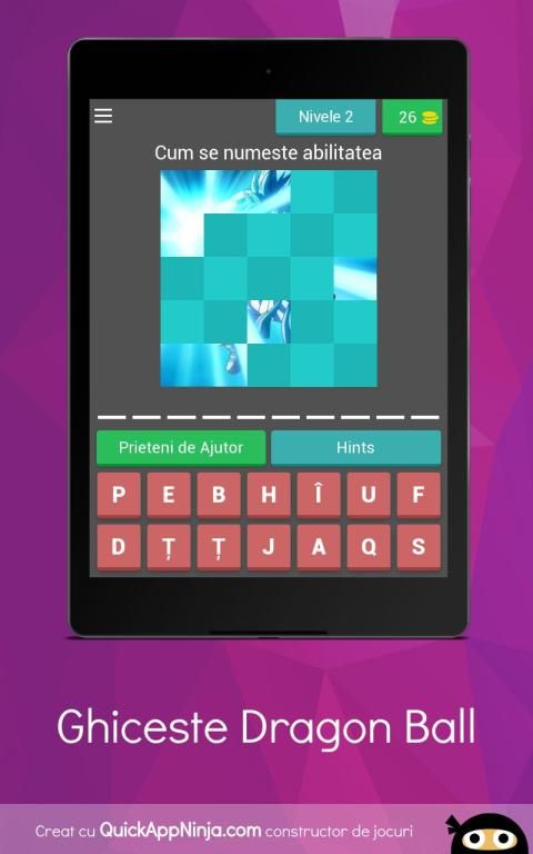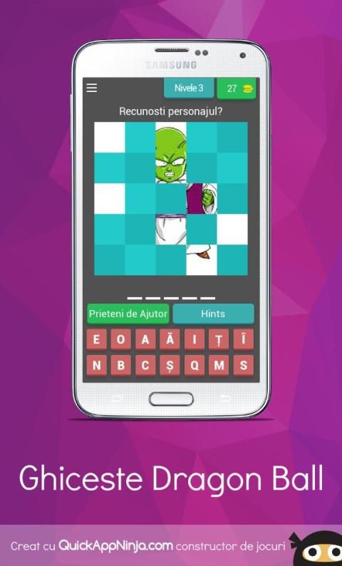 Principiul de baza al acestei aplicatiei este sa ghicesti personajul din Dragon Ball care iti va fi afisat pe ecran si sa termini jocul.