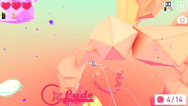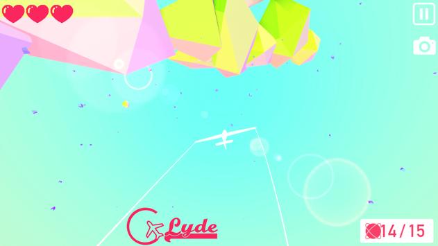 Come aliante, potrai scegliere tra una varietà di aeroplani. Ogni aereo ha le proprie proprietà come velocità, virata, efficienza del carburante ... ecc. Una volta deciso il viaggio, puoi sperimentare il volo all'interno di un fantastico mondo astratto fatto di rocce colorate e isole che galleggiano nel cielo. Raccogli le sfere di energia senza perdere tutte le vite, se hai successo, passerai al livello successivo.
