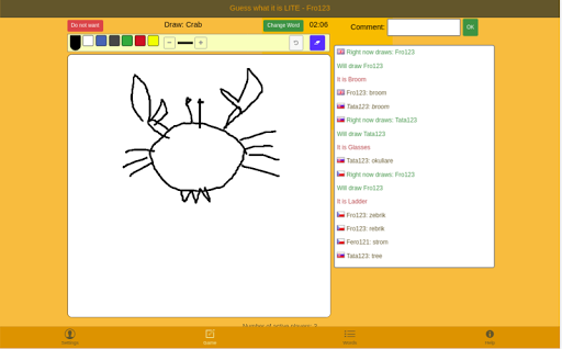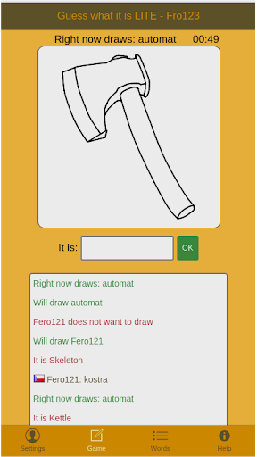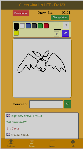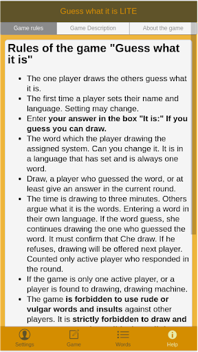 The player who draws receives word that will draw. The word is multilingual, every snake in the language that has been set.