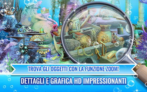 oggetti nascosti in italiano gratis! Cerca e trova oggetti nascosti nella parte inferiore dell'oceano e scopri il mistero del mondo sconosciuto. Gioca Oceano giochi oggetti nascosti – Caccia al tesoro e sperimenta un livello completamente nuovo di divertimento. Segui la sirena! Le aiuterà a trovare ogni singolo oggetto nascosto che dimostrerà che tutte le leggende della città perduta di Atlantide sono veramente vere.