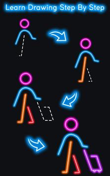 will teach you how to Draw Glow Stickman. This app will show step by step how to draw. You don't need any special skills it’s self-teaching and learn to draw.