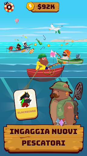 - Sblocca nuovi pescatori che continueranno a farti guadagnare anche quando non ci sei!