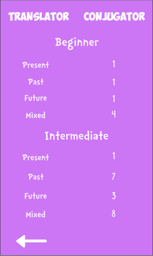 The second game focuses on the conjugation of verbs, select the correct conjugation within the time limit to progress.