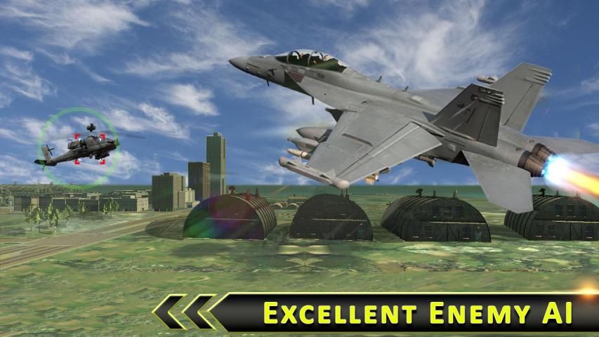 Air Force Jet Attack is real jet fighter air battle that combines stunning 3D graphics with flight control simulation and engaging military scenarios to pull you into an immersive combat experience. If you like extreme action games then this jet fighter mania is immensely action packed to feel intense combat warzone in the middle of enemy crossfire. Show the world how to restore peace with your heavily armed airplanes.