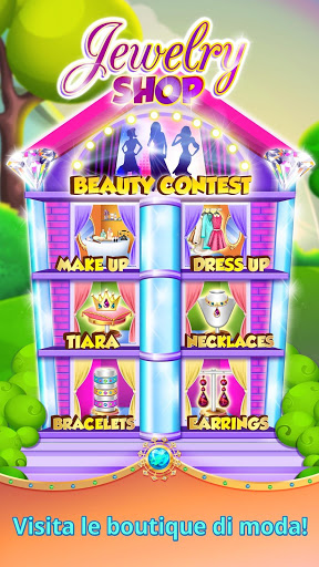 principessa in gioielleria nello spettacolare salon di vestiti per le bambole alla moda! Trova un vestito per una serata fuori, notte del ballo o anche il giorno del tuo matrimonio! Ottieni gioielli alla moda nel 2018 e assomiglia a una principessa!