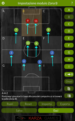 - Puoi cambiare strategia e tattica in tempo reale durante la partita ed effettuare eventuali sostituzioni.