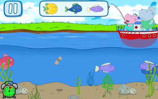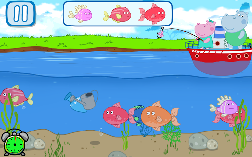 Ti aspettano avventure con simpatici marinai. Lo scopo del gioco è catturare i pesci per una tavola festiva. La mamma sta aspettando i suoi marinai preferiti. Ma il compito non è così facile. Non ha bisogno di alcun aiuto e ovviamente il tempo è limitato. Solo il lavoro di squadra aiuterà a completare questi compiti. Ecco perché Hippy e papà sperano che i bambini possano aiutarli. Ma Hippo non è un marinaio molto abile.