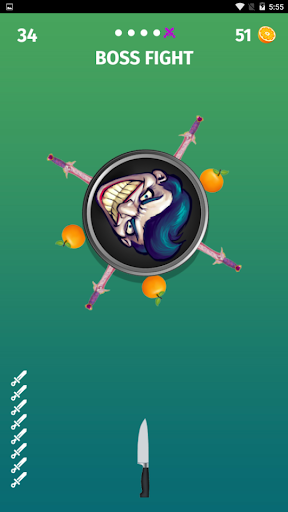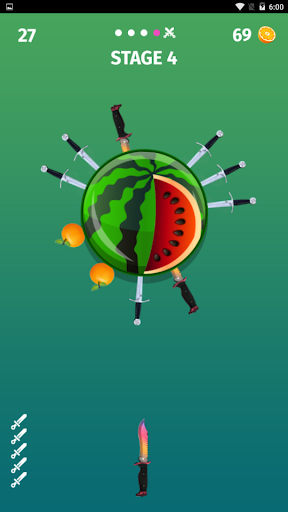 Throw knives into tree trunks to break them and hit the fruit. Cut the objects and unlock new knives. After every 5th stage there is a boss to protect the challenge - beat them to get special knives!