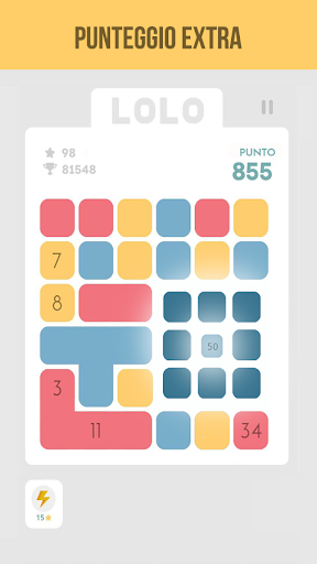 - Toccare e raccogliere i stessi quadrati colorati, devono essere almeno tre quadrati in contatto