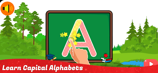 Learning English alphabets and numbers by moving your hand on their shapes, if your child could move his finger on the letter in a correct way then the app will give him three stars on that level otherwise he would get two, one. also, this app can help older people who didn't learn English alphabets lower case and uppercase with pronunciation