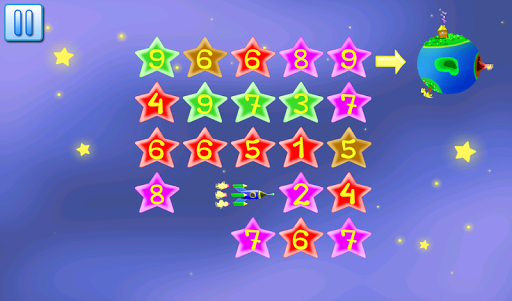 Al secondo livello, la sonda dovrebbe raggiungere il pianeta. Per fare questo, è necessario fare clic sulla prossima stelle con i numeri in ordine 123, etc. Qui, il bambino impara l'ordine di cifre.