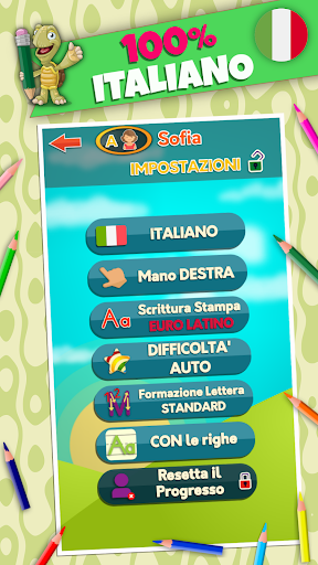 • Le impostazioni di gioco sono per default determinate dal controllo parentale. Questo può essere disabilitato, ma esso garantisce che il bimbo scriva in un certo font, con precise regole di formazione, livello di difficoltà e altre funzionalità per una completa indicazione delle necessità.