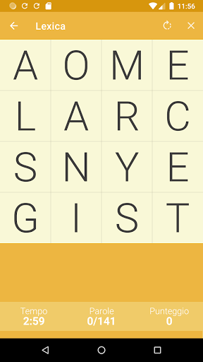 Lexica è un gioco di parole in cui ai giocatori viene assegnato 3-30 minuti per trovare quante più parole possibili su una griglia di lettere casuali.