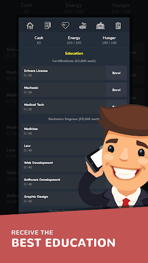 Ever wanted to run your own business? Life Simulator offers you that opportunity! Save up the cash, and open a business, then upgrade your business and see the profits just roll in. Get rich quick!