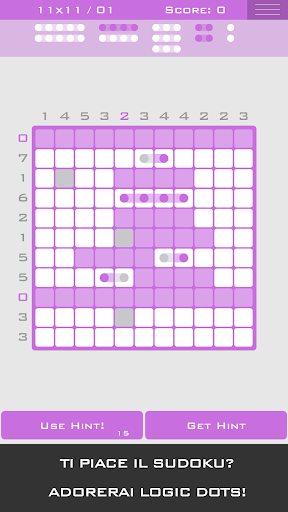 Se ti piace risolvere puzzle geniali, Logic Dots fa per te. Giocare è facile: posiziona punti sulla griglia e risolvi il puzzle! Superbamente semplice, inevitabilmente avvincente e diabolicamente difficile con l’avanzamento, Logic Dots è una fantastica combinazione di Sudoku e Battaglia navale. ***Il primo puzzle/gioco da tavola pluripremiato sull’ App Store con quasi un milione di giocatori - incredibile!***