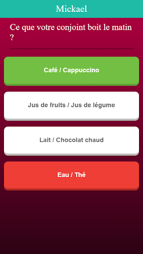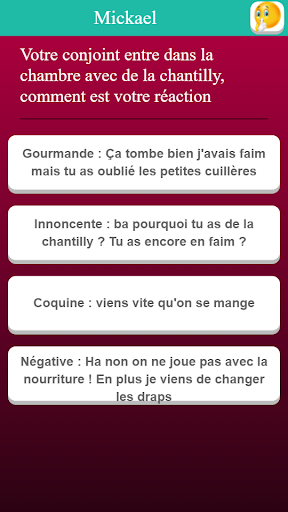Questa coppia quiz è ti permette di giocare con il tuo coniuge.Il gioco si avvicina nell'atmosfera dei giochi televisivi Gli Zamours of France 2.