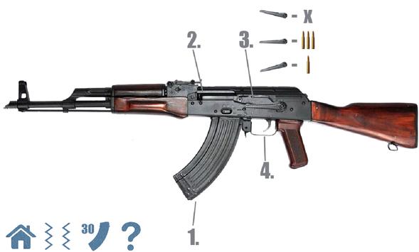 Questa semplice app simula un fucile d'assalto.Prima carica i proiettili, quindi usa l'otturatore, scegli la modalità di fuoco e spara.