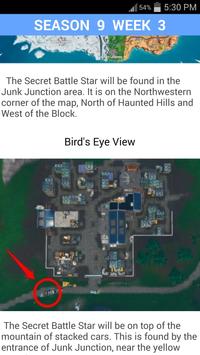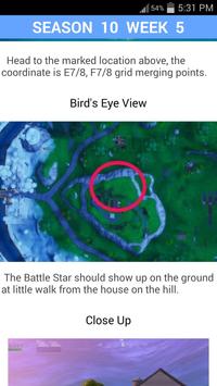 In the app you will find tips to the challenges of the battle pass in the popular game mode Battle Royale. By selecting the desired season and week in the app, you will see the challenges to it and maps with detailed tips on their implementation.