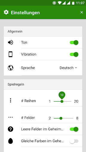 Ogni partita è una nuova sfida, devi tatticamente indovinare un altro codice segreto. Per farlo, puoi impostare diversi colori in ogni riga. L'app ti dirà quante ipotesi fossero corrette e se la posizione dei perni colorati è giusta. Con questa conoscenza, impostare nuove righe è facile. Bene, almeno se hai un cervello del master;)
