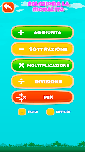 * MIX: aggiunta, sottrazione, moltiplicazione e divisione vengono visualizzate in modo casuale.