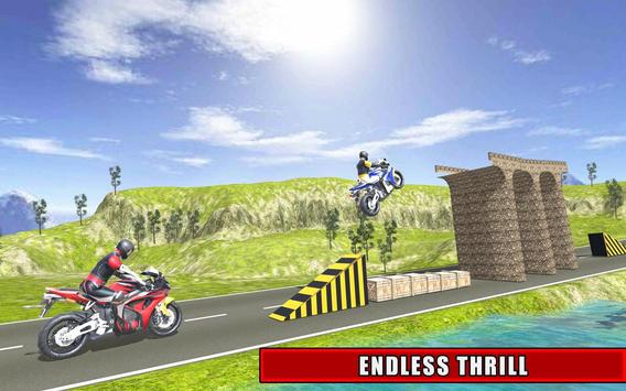 Enjoy stunning and striking HD graphics which provides the best landscape massive highway 3d police bike stunts on curves paths with fast speed racer tracks skills by successfully complete different addictive levels, each level be composed of risky and jumper bike stunt adventure parking routes.