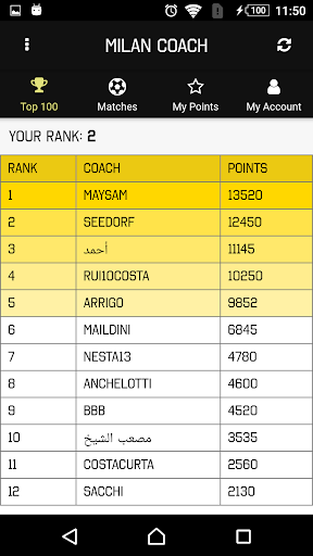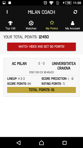 Sei l'allenatore del club AC Milan, scegli la tua squadra e imposta la tua previsione del punteggio prima di ogni partita per ottenere punti!