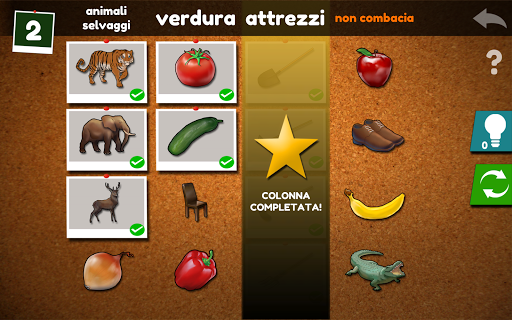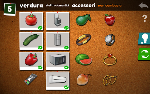 Il gioco è pensato per tutta la famiglia, per questo ci sono livelli più facili che chiunque può risolvere e ce ne sono altri che richiedono un po' più di ragionamento. Trova le combinazioni e completa tutte le categorie.