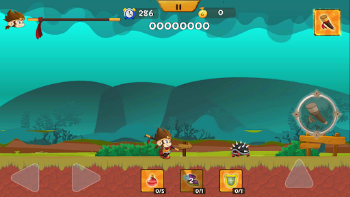 Salta attraverso i nostri livelli impegnativi mentre batte i nemici con un bastone, boomerang, rocce o bombe.