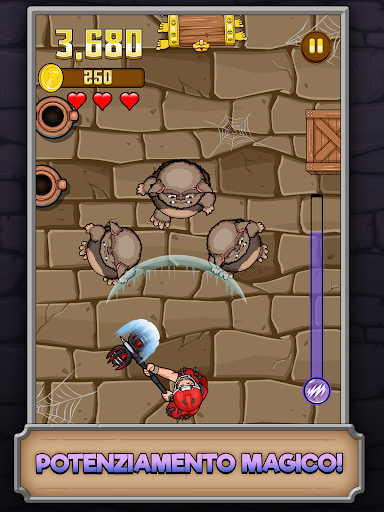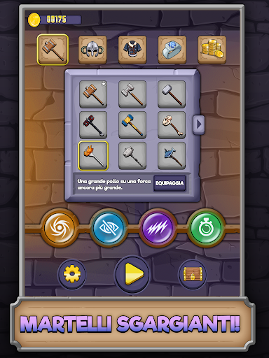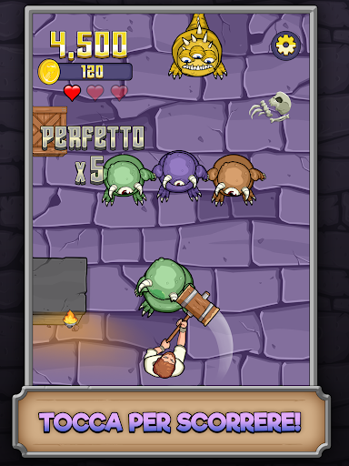 Prepara la tua armatura, prendi la tua arma, ed entra nel dungeon! Con un semplice tocco potrai colpire e distruggere i mostri con il tuo martello, guadagnare monete e saccheggiare lungo il tuo percorso. Fai scontrare i nemici tra loro o falli rimbalzare contro gli oggetti per distruggerli in serie. Sblocca nuovi potenziamenti per avventurarti nel profondo del dungeon e ottenere punteggi record. Scopri i forzieri quando la corsa è finita e ottieni altri articoli dungeon crawl con stile!