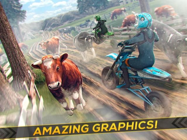 Run as fast as you can with your motocross motor bike to dodge the farm animals.