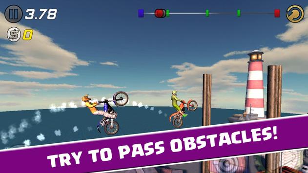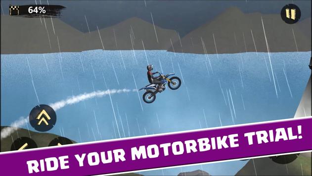 You can select the motorbike or quad, jump to avoid the obstacles in the less time. Try to open gas on the fast speed motorbike to be the moto champion on the world trial championship!