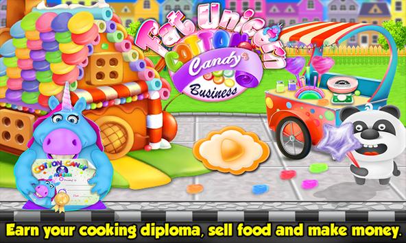 C'era una volta un grasso unicorno che amava cibi dolci e sognava di diventare ricco! Aveva in programma di iniziare la propria attività per guadagnare denaro. Così pensò di fare affari con il suo hobby preferito e stava facendo dolci caramelle di cotone. Ora puoi aiutare l'unicorno di Mr. Fat a realizzare il suo sogno di aprire la propria attività in questo dolce gioco di cucina e di apprendimento. Fagli imparare l'arte di preparare dolci caramelle di cotone alla moda in forme e sapori incredibili! Fallo entrare nell'accademia di zucchero filato per ottenere il diploma di zucchero filato, così da poter aprire il suo negozio di zucchero filato nel mezzo del suo mondo magico. Fagli aprire il suo negozio e vendi un sacco di caramelle di cotone e i nuovi e alla moda burritos di zucchero filato in diversi colori e sapori e vendili il più alto possibile per guadagnare denaro. L'unicorno grasso vuole diventare ricco e comprare la propria auto e casa. Puoi aiutarlo?