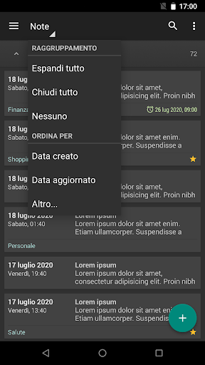 - Ordina le note per data di creazione, data di aggiornamento, il titolo e la cartella