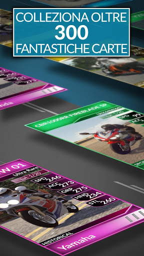 • Azione veloce. Scegli le 5 carte con cui giocare e preparati a conquistare Donington, Road America, Imola ed altri luoghi della velocità. La battaglia si decide su velocità, accelerazione, tenuta, comportamento e stile. Vinci le partite e riscouti il tuo premio: nuove carte, pezzi meccanici ed esperienza per avanzare di livello.