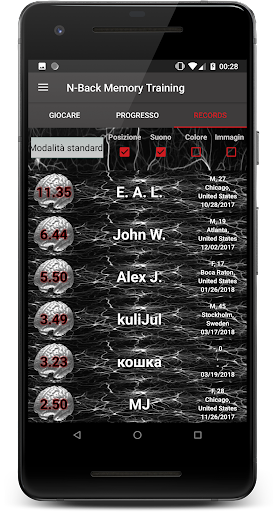 N-Back Memory Training ti consente di scegliere tra diversi set di elementi da archiviare nella memoria di lavoro: