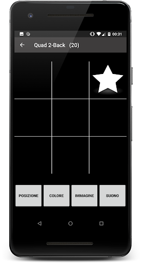 ) in passato hai bisogno di ricordare. Per impostazione predefinita, inizierai con il 2-back, quindi premi il pulsante match se l'elemento corrente corrisponde all'elemento che si è verificato 2 volte nel passato. Per una semplice dimostrazione di come si gioca a single 2-back, guarda questo video: https://www.youtube.com/watch?v=qSPOjA2rR0M .