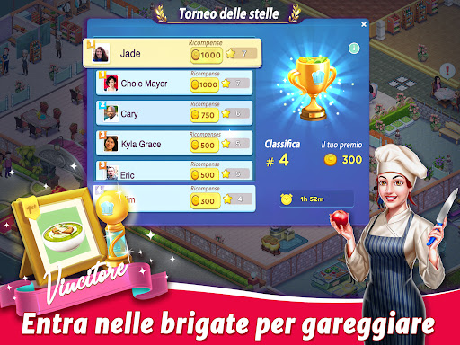 Arricchisci il tuo diario di cucina con abili chef internazionali. Migliora le tue abilità culinarie e partecipa a gare di cucina.