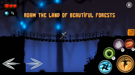 Explore beautiful yet treacherous forests, hidden worlds and mountains, avoid deadly traps and dangerous obstacles. Take advantage of your mystical, special abilities and rare power ups to defeat the mythological Shadow Warriors. Darkness must shatter in this beautiful land and you are here to bring justice with your Ninja skills. Embark on a legendary adventure and roam the land of beautiful forests, jungles, hidden world and mountains.