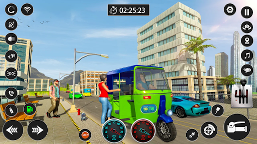 Intraprendi un emozionante viaggio stimolante con la guida in risciò automatico tuk tuk e fornisci un servizio di ritiro e consegna in questo gioco 3d di guida automatica in risciò tuk tuk. Se sei pazzo della sfida di guidare un risciò automatico tuk tuk in una città frenetica, allora questo risciò automatico della città è adatto per divertirti giocando a un gioco di guida di risciò passeggeri - sparatutto e goditi il giro in auto. Ora hai la possibilità di vivere questa pazza avventura di risciò in auto in città! Guida veloce con il tuo risciò automatico in città e goditi la sensazione di un gioco da ragazzi e goditi il tempo della tua vita mentre fornisci un servizio di ritiro e consegna. Diventa un autista di trasporto pubblico e gareggia con altre auto, hai la sfida di far salire e scendere i passeggeri in qualsiasi momento in questo gioco di guida di risciò. Facile da guidare, questo risciò urbano è un trasporto pubblico leggero con traffico intenso in città.